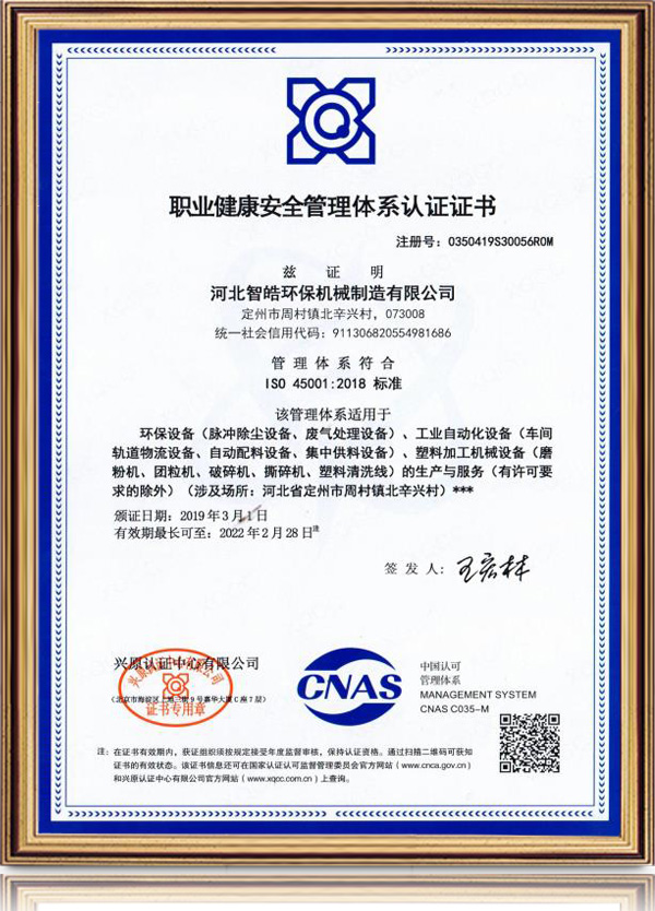 It Has Passed ISO9001 Quality Management System, ISO14001 Environmental Management System Certification And ISO45001 Occupational Health And Safety Management System Certification