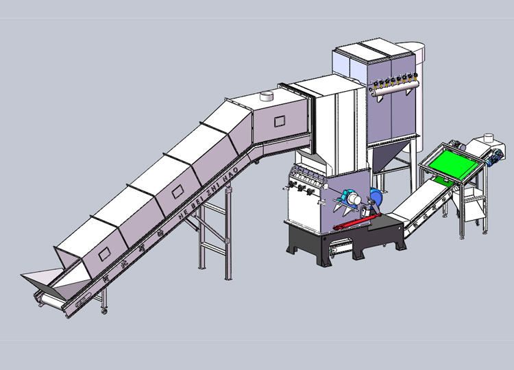 破碎机通过电动机带动动刀盘高速旋转,在动刀高速转动的过程中与定刀形成相对运动的趋势利用动刀与定刀之间形成的间隙造成塑料粉碎剪切的切口从而将大块塑料进行破碎,破碎后的塑料通过筛网对塑料颗粒大小进行过滤输出。