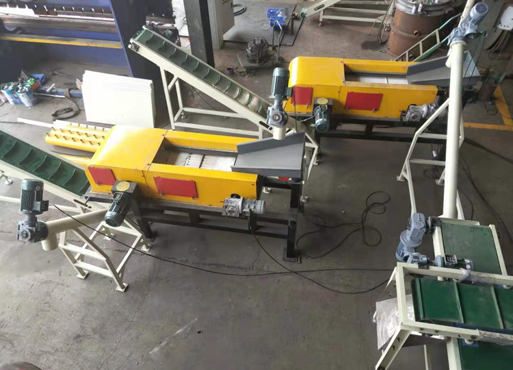 电容回收设备可将废旧电路板上的元器件分离,能把各类、导体物质与非导体物质分离、金属与非金属分离,设备主要用于废旧电子垃圾中的电容及铝塑混合物的金属分选。